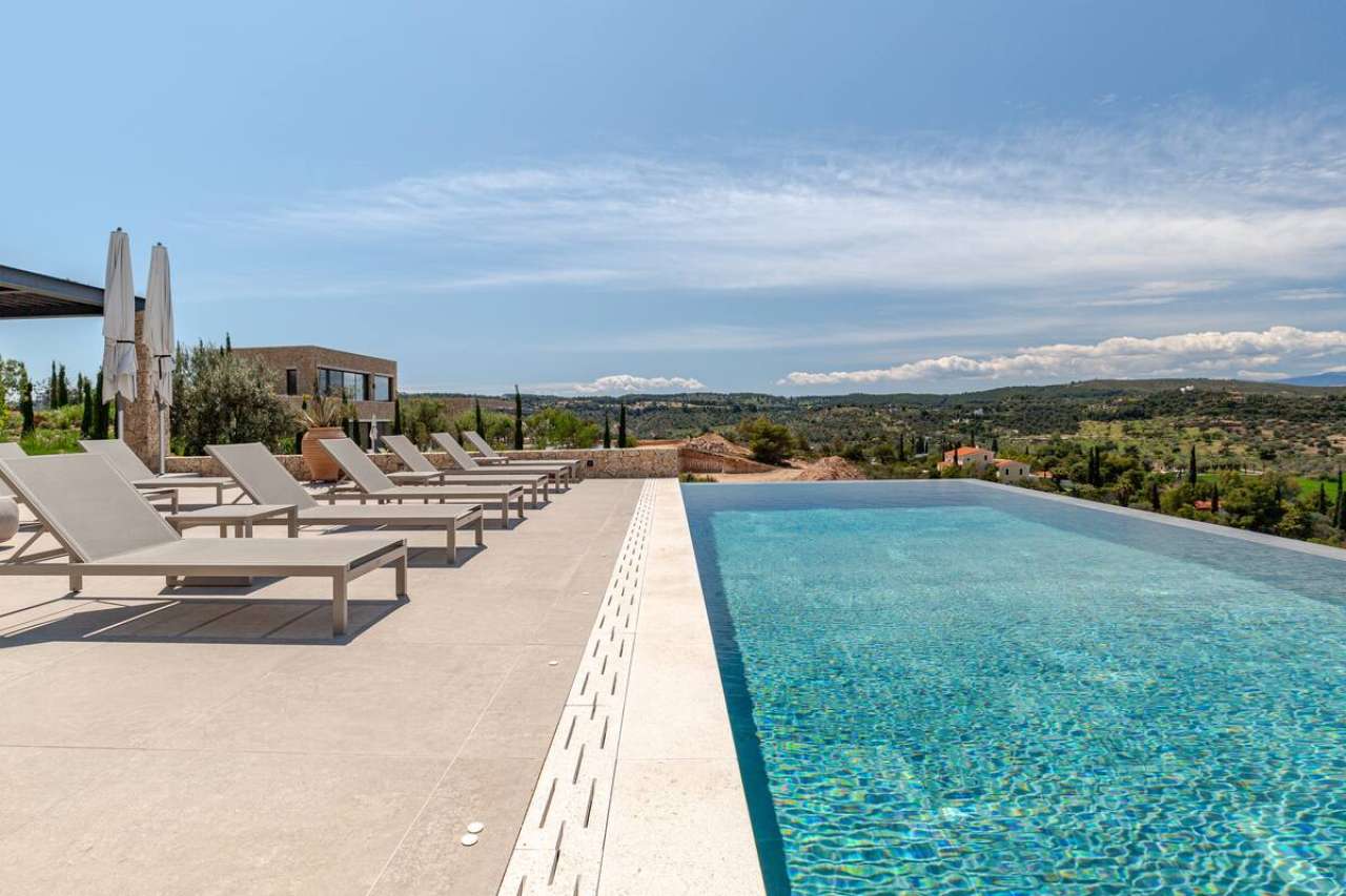 Villa Alchaca is a stunning residence designed to accommodate 14+1 guests, combining contemporary elegance with classic comfort. Nestled on a hilltop near the charming fishing village of Kilada, this villa offers unparalleled views of the sea and unforgettable sunsets, making it a dream destination for your Greek holiday.