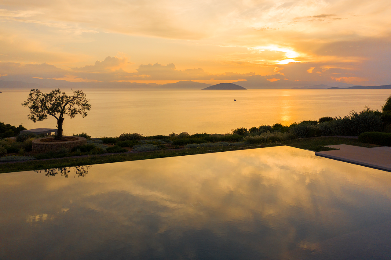 Charming and spacious gated residence located 2km from the picturesque fishing village of Kilada, this villa boasts 7 bedrooms with in suite bathrooms, 2 WC, generous indoor and outdoor living and dining areas, sea-sunset view office, BBQ facilities, landscape garden. The villa’s 600m² are tastefully furnished, all areas have A/C and accommodate up to 12 adults & 4 children (16 persons).