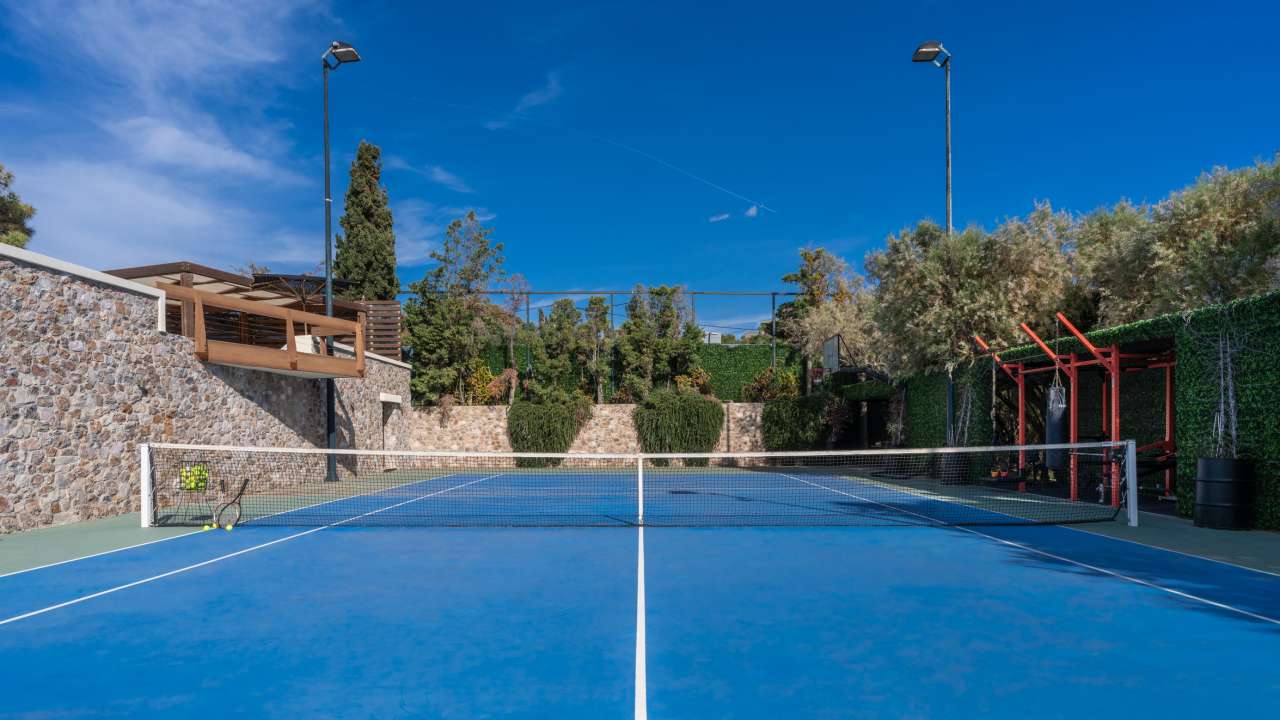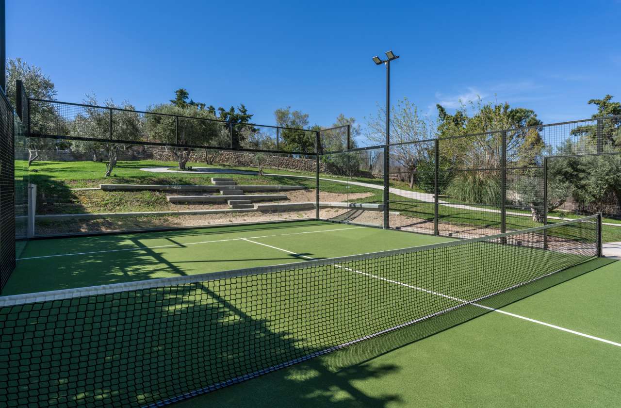 The villa features seven spacious en-suite bedrooms, a private guest house, and dedicated housekeeper’s quarters, offering ample accommodation for family and friends. For moments of leisure, guests can enjoy two resort-style sea-salt swimming pools, a professional-grade tennis court, a padel court, and a mini soccer field. Ample parking with electric vehicle chargers further enhances the property’s convenience and eco-friendly appeal.