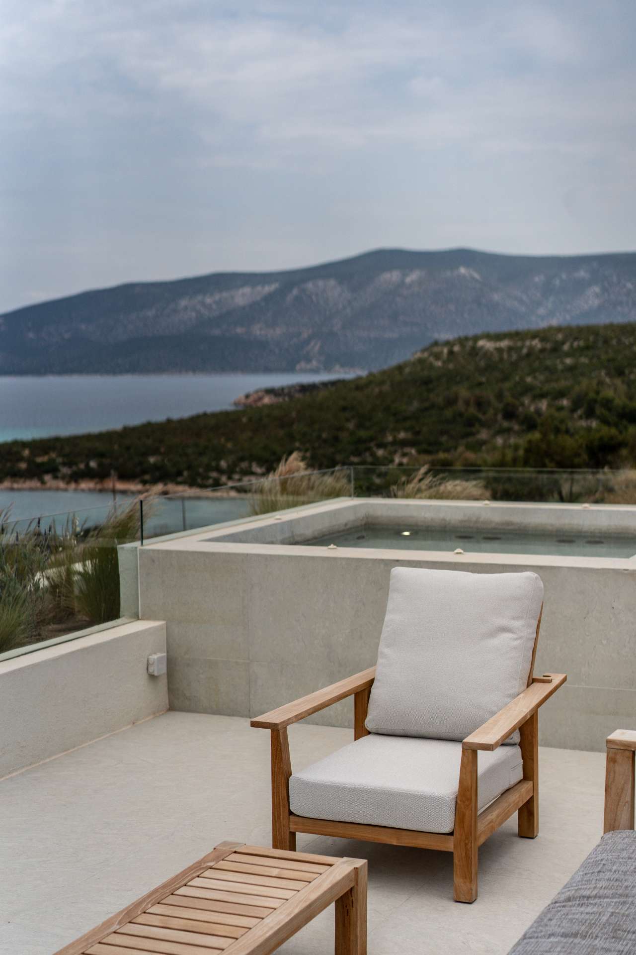 Designed with elegance, the villa’s interiors blend neutral tones, natural materials, and Italian furniture, creating a soothing atmosphere complemented by breathtaking sea views. A private spa with a Klafs sauna, steam room, and cold plunge pool invites relaxation and rejuvenation.